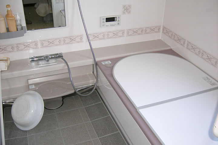 水戸市のSさんのお宅では、お風呂や化粧台の水漏れや、長年使用したお風呂や洗面所の壁の汚れが気になっていました。