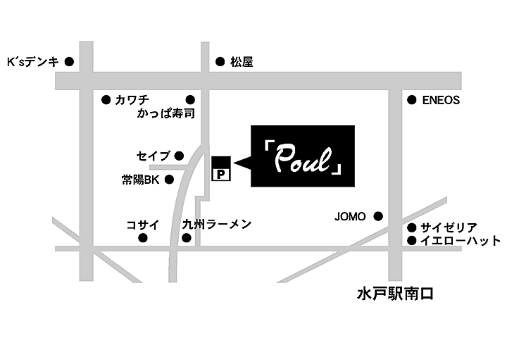 「Poul」 住所:〒310-0836 茨城県水戸市元吉田町1389-6 電話:029-246-2553 営業時間:Weekday 10:00〜20:00 Weekend 10:00〜19:00 定休日:毎週火曜日・第3月曜日 |
