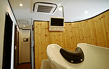| シャンプー室は暖かみのあるライトカラーの木材を使用しました。 | シャンプー台も当社で設置致しました。 | 思わずウトウトしてしまいそうですね。 |